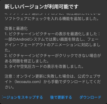 オンライン更新に失敗した場合は、公式サイト(lecoauoto.com)から手動ダウンロードが可能です。