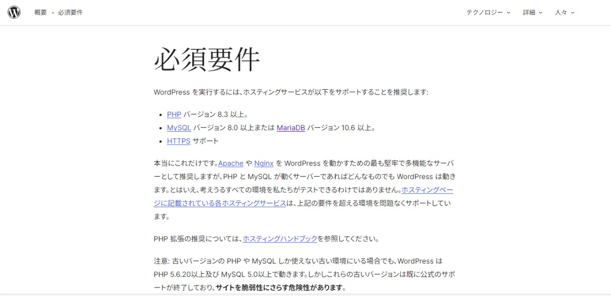 WordPress 6.9公式の必須要件はMySQL バージョン 8.0以上またはMariaDB バージョン 10.6以上
